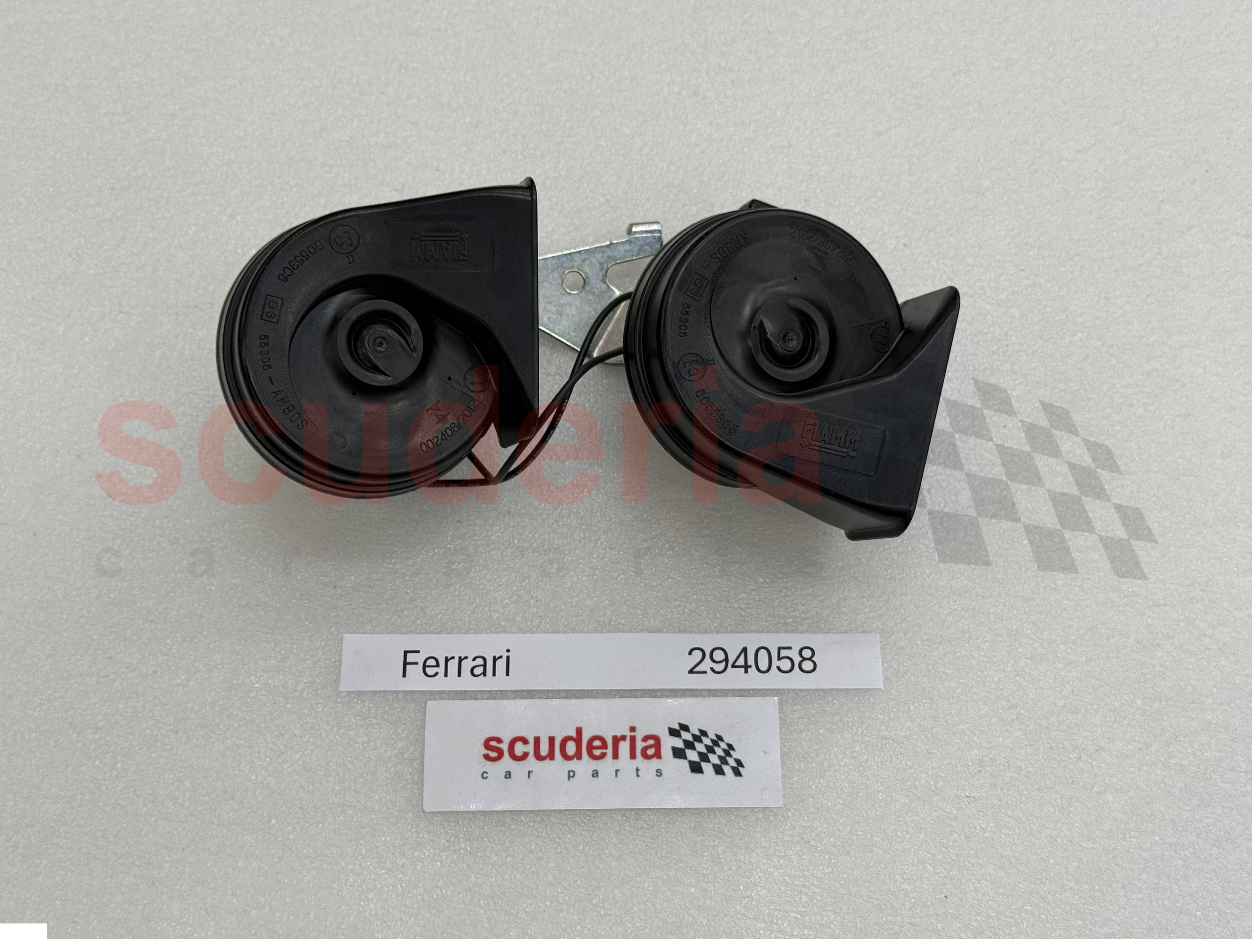 La pièce Ferrari numéro 294058 est un klaxon complet avec support. Il s'agit d'une pièce de rechange pour le klaxon des modèles Ferrari California et California T. Le klaxon est utilisé pour alerter les autres conducteurs et piétons de la présence du véhicule. Il est également utilisé pour signaler une urgence.